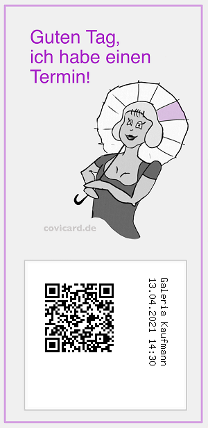 Verschlüsselte Datenübertragung (SSL/TLS-Verschlüsselung = HTTPS). Datenverarbeitung auf Server in Europäischer Union. Die COVICARD wird sofort ausgegeben. Nach Ausgabe ausdrucken oder speichern. |